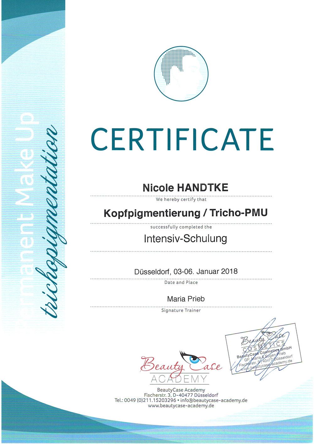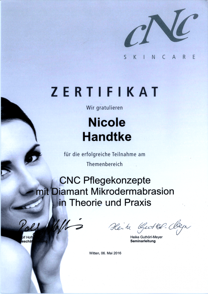 Nicole Handtke und ihr Team stehen für höchste Ansprüche in Sachen Qualität, Präzision und Sauberkeit. Jede Behandlung ist immer wieder eine neue Herausforderung und erfordert höchste Konzentration für das jeweilige bestmögliche individuelle Ergebnis für die Kunden und deren Zufriedenheit. Um den Status Quo auf diesem Spezialgebiet beizubehalten erfordert es ständig an Fortbildung, Know-how Transfer und Austausch in diesem Bereich.